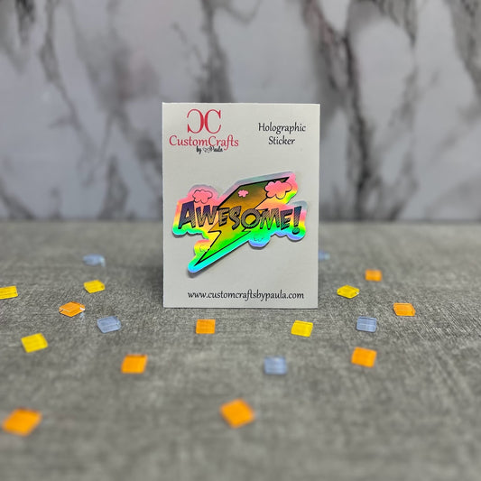 AWESOME Lighting Bolt, Holographic Sticker, Sparkly Sticker
